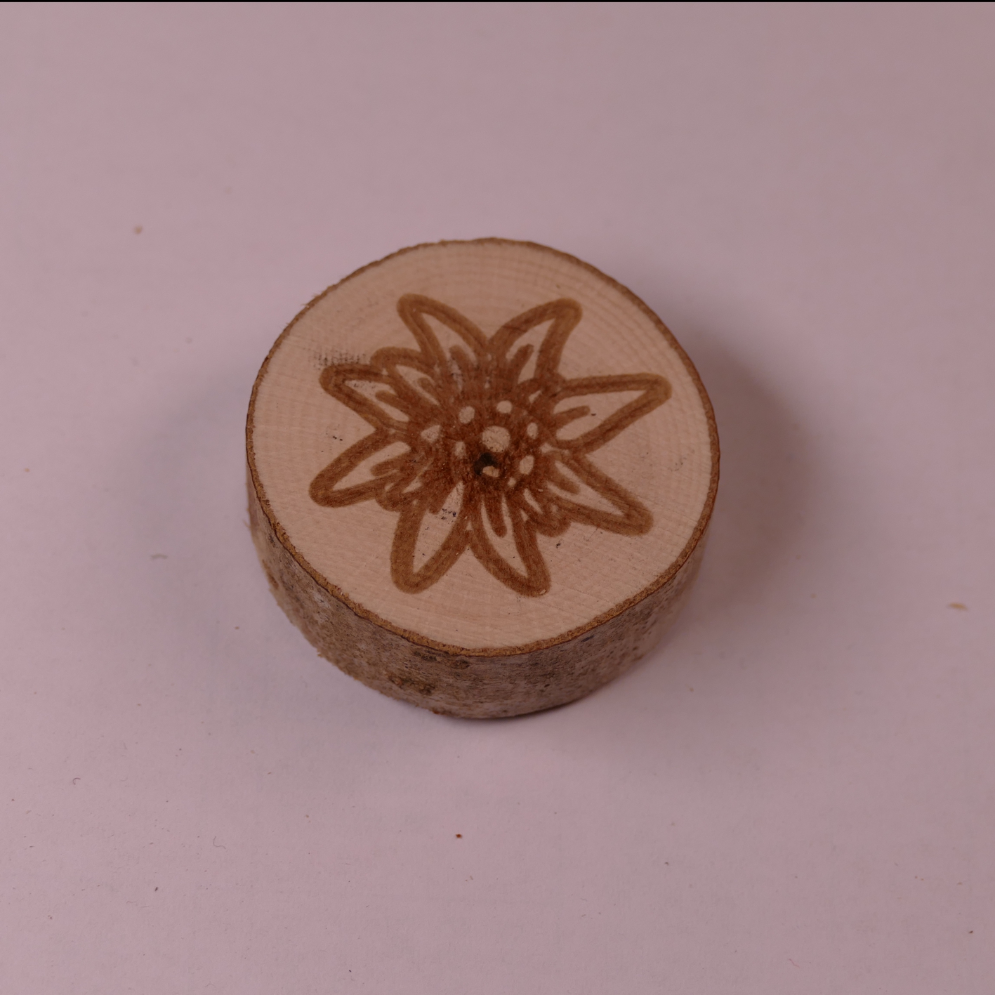 Hier bekommen Sie ein echtes Unikat aus Holz. Ein haftstarker Holzmagnet befestigt auf einer Baumscheibe. Dieser ist bestens für die Besfestigung an Kühlschränken, Pinwände geeignet, und sorgt nahezu